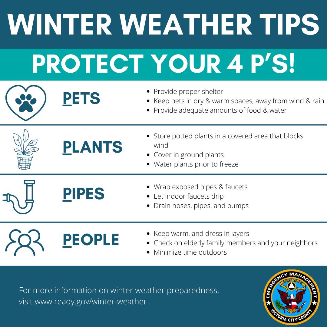 The Victoria Office of Emergency Management, in coordination with the Homeless Coalition of the Golden Crescent, is monitoring forecasted weather conditions indicating the potential for sustained overnight temperatures at or below 32 degrees Fahrenheit, impacting Victoria County and surrounding areas.